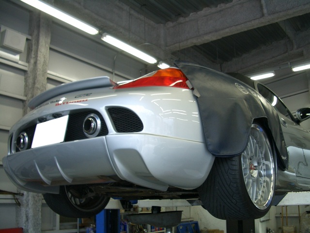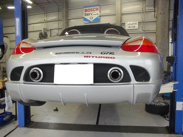 ポルシェ 986 ボクスター ゲンバラロードスターGTR500 車検でのご入庫です。