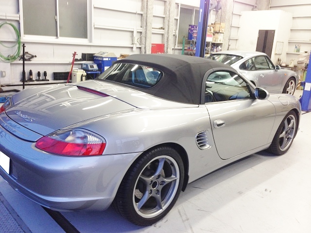 ポルシェ 986 ボクスターS 車検でご入庫いただいています。